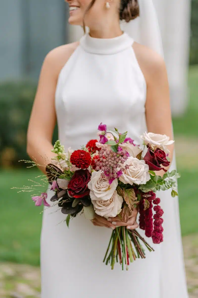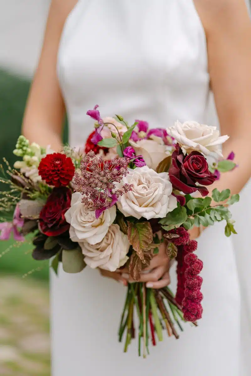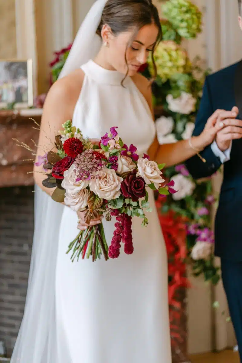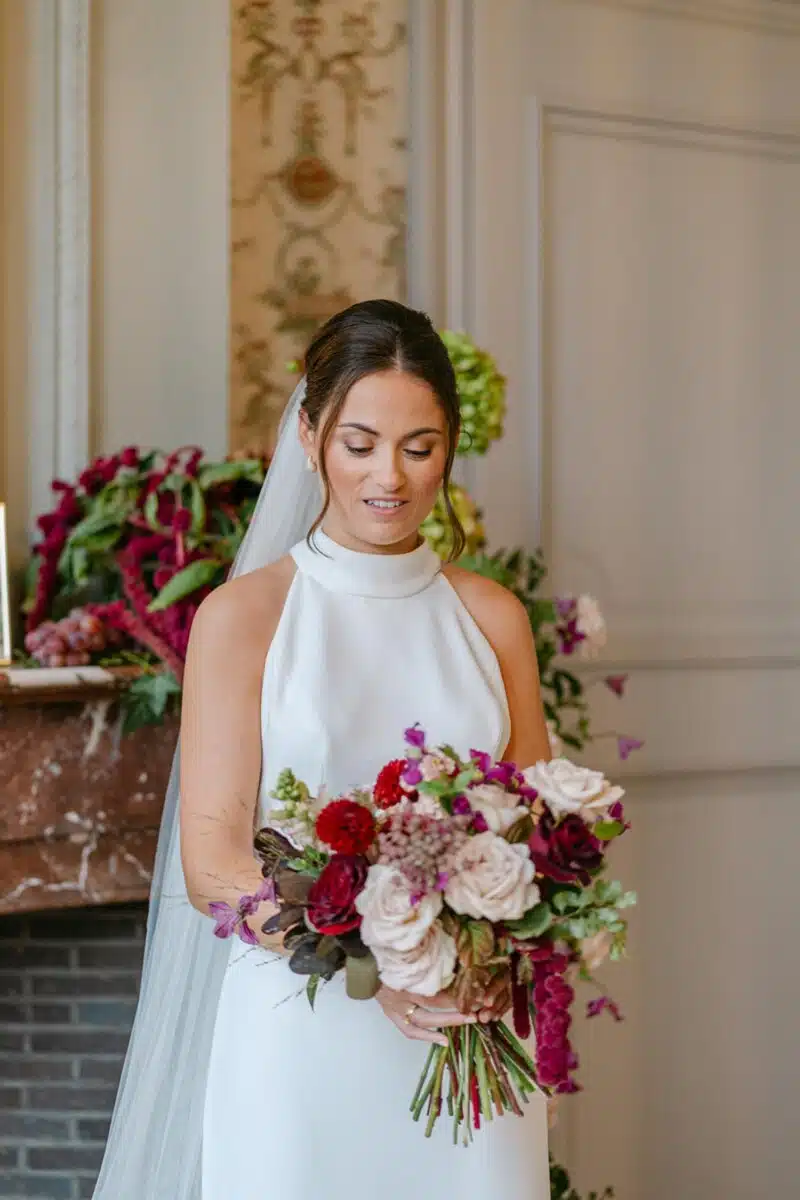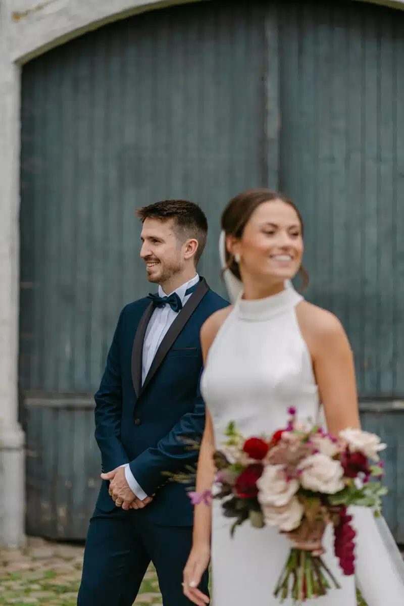 Het kleurthema was een heerlijke combinatie van bordeau, roze en subtiele zachte tinten om het geheel warm en elegant te houden. Een blend waar je instant wedding mood van krijgt. Deze kleuren pasten bovendien perfect bij de sfeer van het kasteel: statig, stijlvol en toch helemaal toegankelijk voor een modern koppel zoals Reinout en Claire.