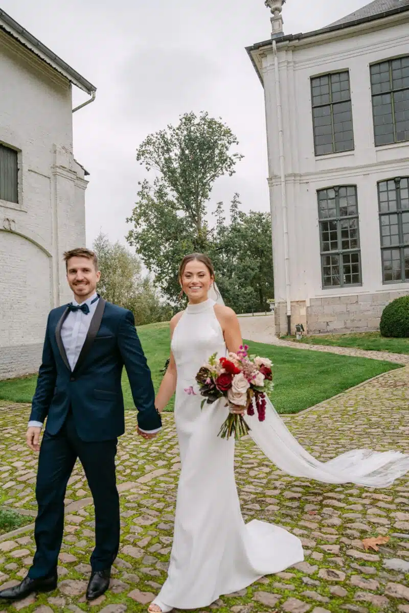 Aalst represent! Reinout en Claire kozen voor hun huwelijk het prachtige Kasteel Te Lake in Zulte, een locatie die sowieso charme uitstraalt, maar — laat ons eerlijk zijn — nog mooier wordt wanneer bloemen hun podium krijgen. En oh boy, dit koppel gaf me carte blanche om hun dag te stylen met kleur, textuur en heel wat romantische vibes.